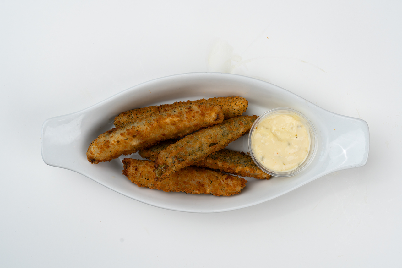 Votre choix de saveurs : Buffalo, BBQ, miel et ail, sauce chili douce ou sel et poivre. Servies avec des carottes, des | ![]() CORNICHONS FRITS Cinq languettes de cornichon à l’aneth croustillantes. S’accompagnent d’une trempette ranch. | ![]()