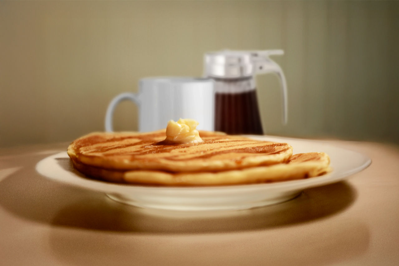 Trois crêpes ou trois tranches de pain doré saupoudrées de sucre à glacer et servies avec du sirop et du bacon, du • Avec du vrai sirop d’érable 1,99 | ![]()