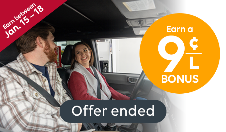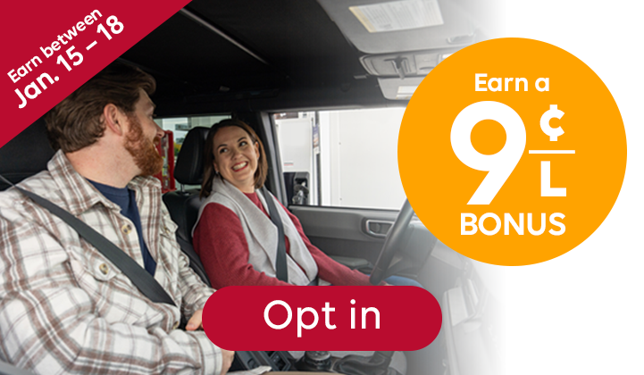 Get in on this month's promotionsEnjoy the offers below to maximize your fuel savings. Text with links grid component ContentEach time you fuel up at Irving with 30 L+and swipe your Irving Rewards card this month, you getcloser to an exclusive reward*:• 3 visits per month = 3¢/L reward• 4 visits per month = 6¢/L reward• 5 visits per month = 9¢/L reward*Terms and conditions apply ContentWeekend offer:Earn a 9¢/L reward when you visit Irving, swipe and fuel 20 L+ between January 15 and 18.*Terms and conditions apply Text with links grid component