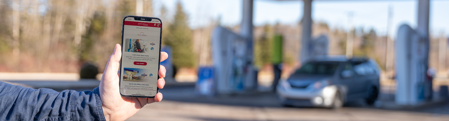 Offer valid January 1, 2025, to December 31, 2025, at participating Irving Oil locations in Atlantic Canada. You must first download the Hometown Rewards mobile application, create an account, and link your AIR MILES collector number in the app to become a Hometown Rewards member. Hometown Rewards members will then receive 2x the AIR MILES Reward Miles when they fill-up with 20 L or more of any fuel type (regular, plus, supreme or diesel). No coupon required. Only transactions made after completing the Hometown Rewards application registration steps outlined above will qualify for this offer. A valid AIR MILES card must be swiped/collector number entered at time of transaction to be eligible. The 2x multiplier offer applies to Irving Oil fuel base offer of 1 AIR MILES Reward Mile awarded for every 20 litres of fuel purchased at the pump. Maximum of 20 Reward Miles in a single transaction. Limit of one offer per collector number per transaction. No cash surrender value. Irving Oil Limited and AIR MILES Loyalty Inc. reserve the right to make changes to this offer and to terminate the offer at any time, for any reason and without notice. Void where prohibited by law. Please allow up to 8 weeks post-promotion for AIR MILES Reward Miles to be awarded to your AIR MILES collector account. Trademarks of AM Royalties Limited Partnership used under license by AIR MILES Loyalty Inc. and Irving Oil Limited. All other trademarks used herein are the property of their respective owners.