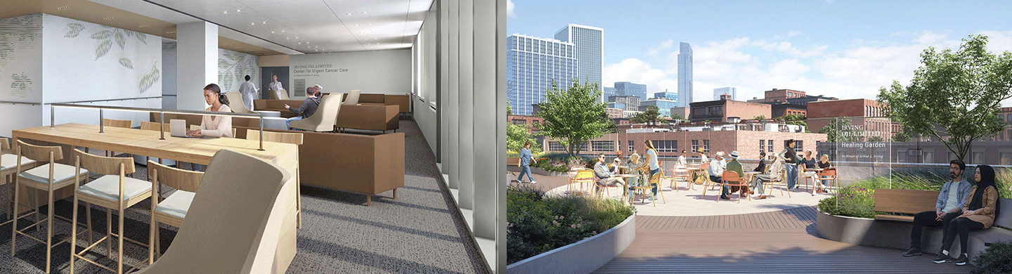 The urgent cancer care center, scheduled to open in 2027, will offer 24-7 access to highly specialized care for cancer patients in a comfortable setting that reduces patient exposure to other illnesses. Overlooking the Boston cityscape, the 7,500-square-foot healing garden will provide many proven therapeutic and holistic benefits for patients through a connection to nature and exercise. It is slated to open in 2030.