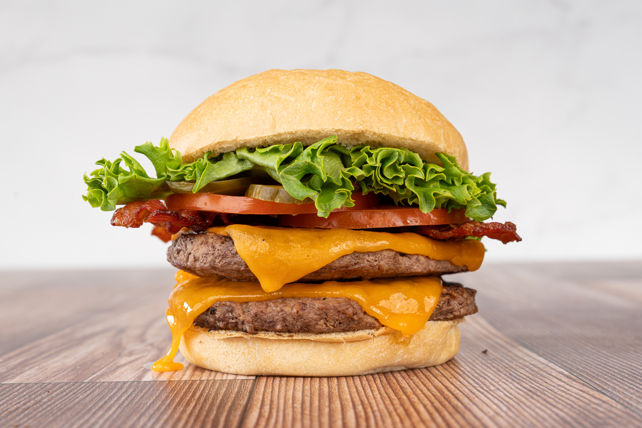 Two seasoned beef patties, topped with double the cheddar cheese, bacon, lettuce, tomato and pickle. | ![]()
