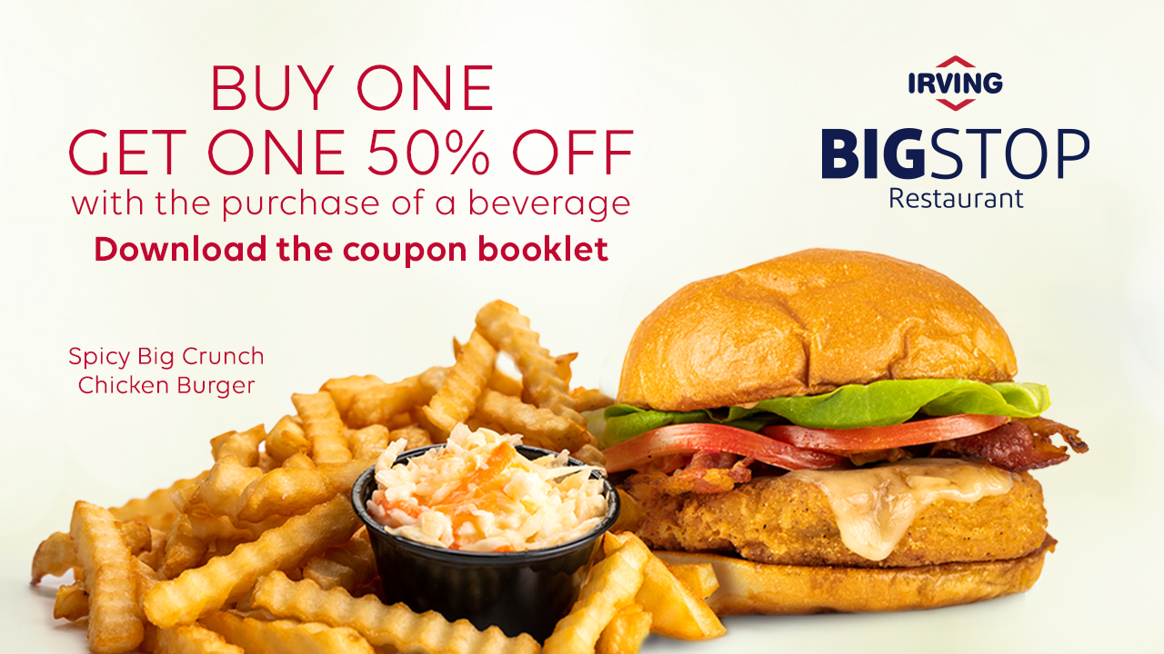 At our iconic Big Stop Restaurants, you will enjoy a family-friendly atmosphere, comfortable seating and options for eat-In dining or takeout. Whether you're craving a hearty breakfast, a juicy burger or classic fish and chips, our menu has something for everyone.