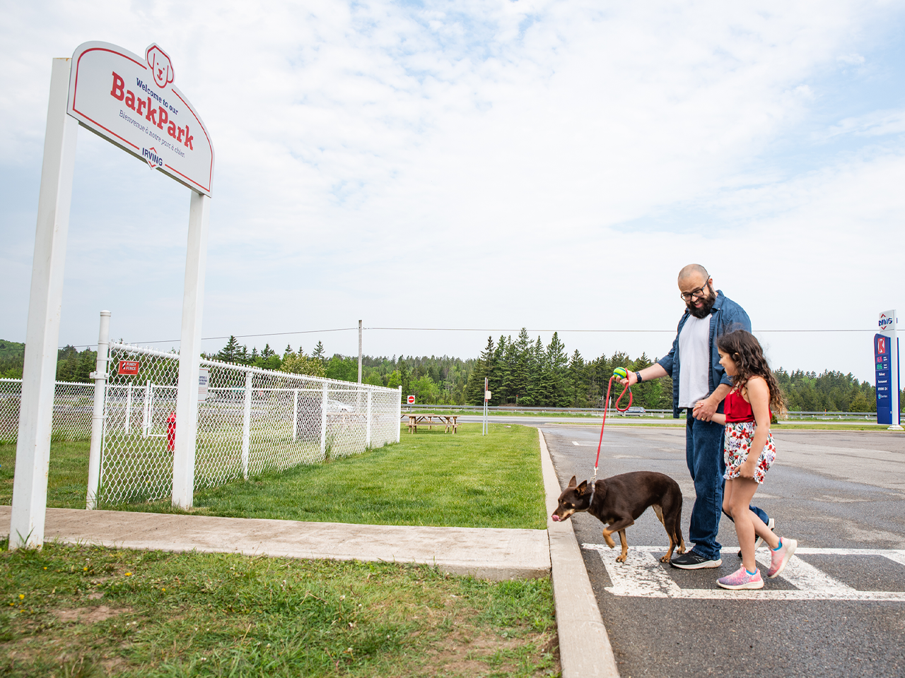Bark Parks are located at select Irving Big Stops and offer pets a grassy, fenced in area where they can safely run and play.