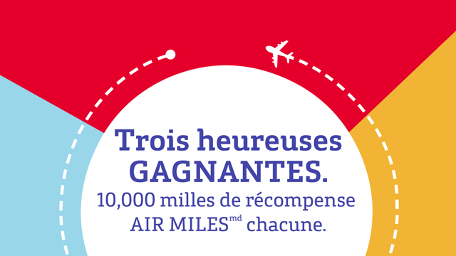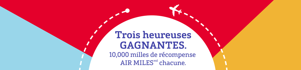 Trois clientes d’Irving Énergie pourront profiter de 10 000 milles de récompense AIR MILESmd supplémentaires. Félicitations à nos gagnantes :