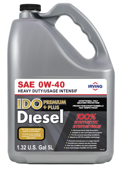 IDO PREMIUM PLUS + 0W-40 SYNTHÉTIQUE est une huile pour moteur diesel comportant une formule unique d’huiles synthétiques du groupe IV à base de polyalphaoléfine (PAO) jumelée à un additif de performance accrue. Cette huile haute performance pour moteur diesel est spécialement conçue pour livrer un combat exceptionnel aux temps froids et ce, dans les conditions d’utilisation les plus difficiles.