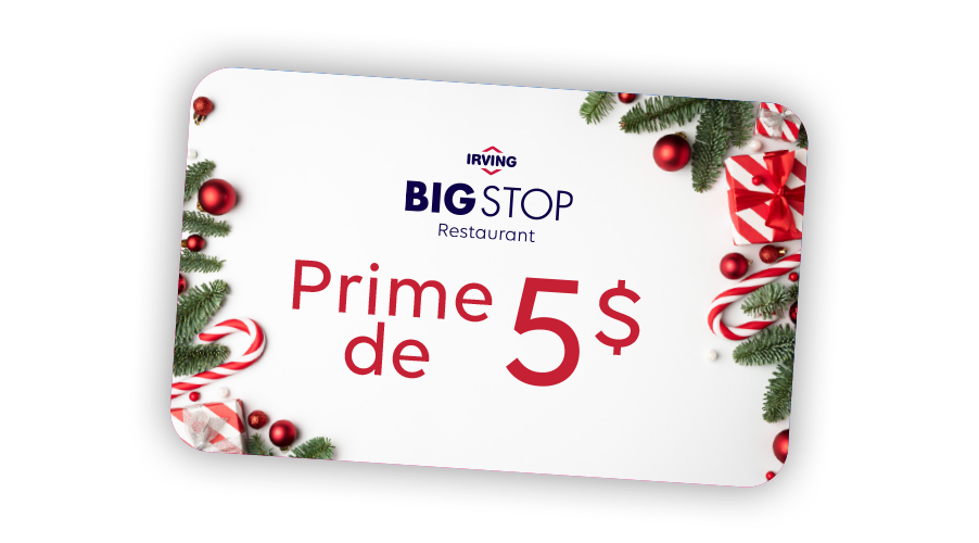 Achetez une carte-cadeau Big Stop de 50 $ et obtenez deux cartes de prime de 5 $ dont vous pouvez profiter.
